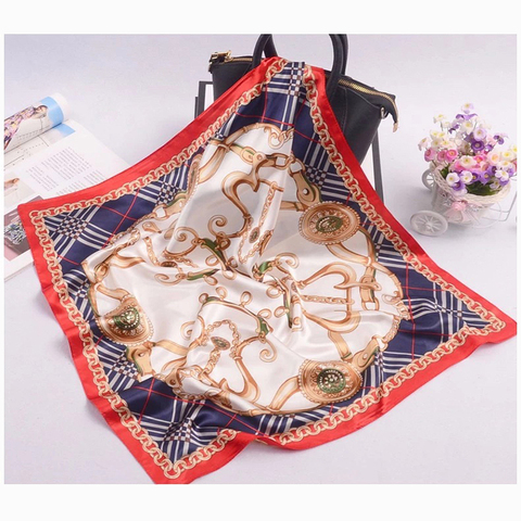 2025年秋新品質チェーンプリント90 Cmスクエア大きなサテンショールスカーフ女性用